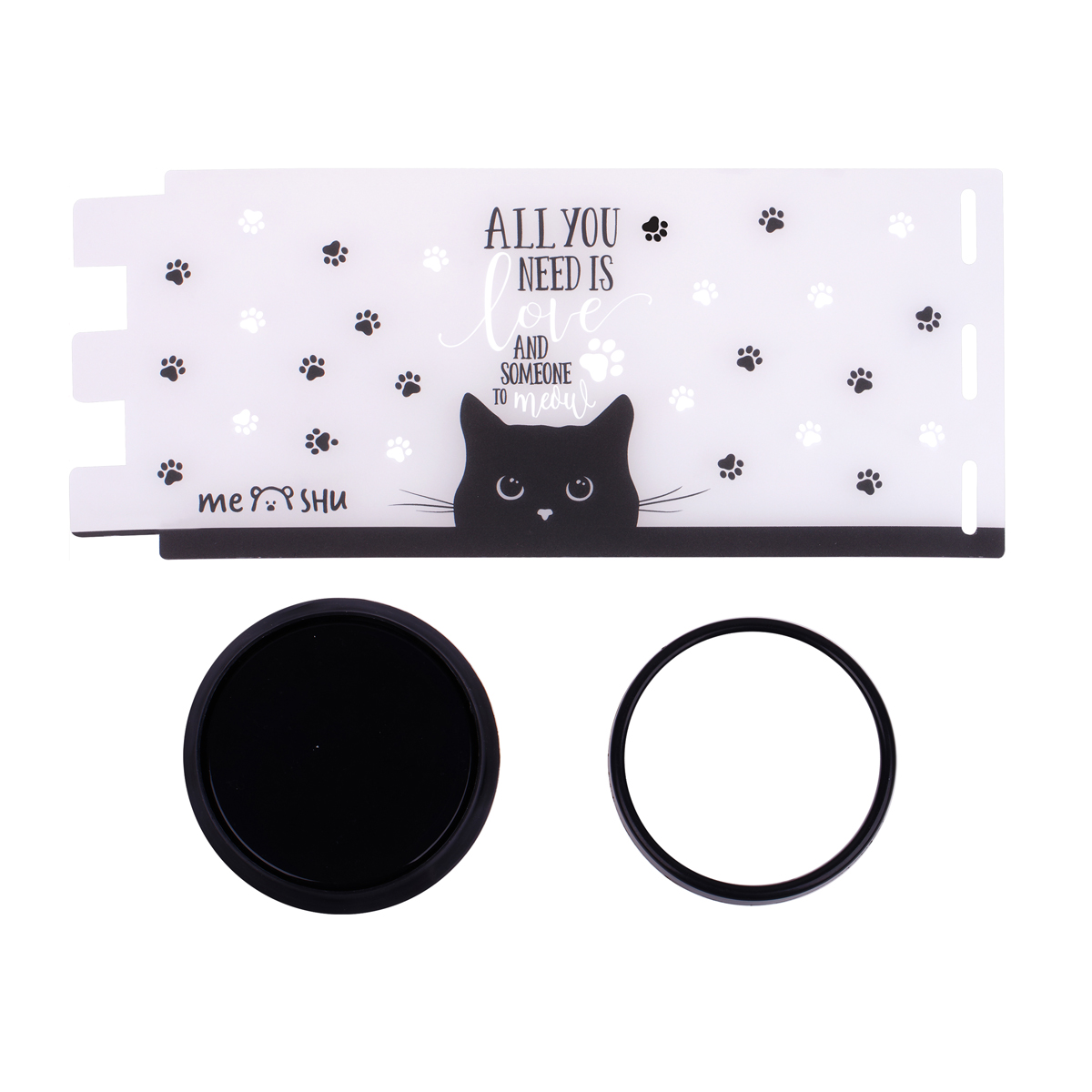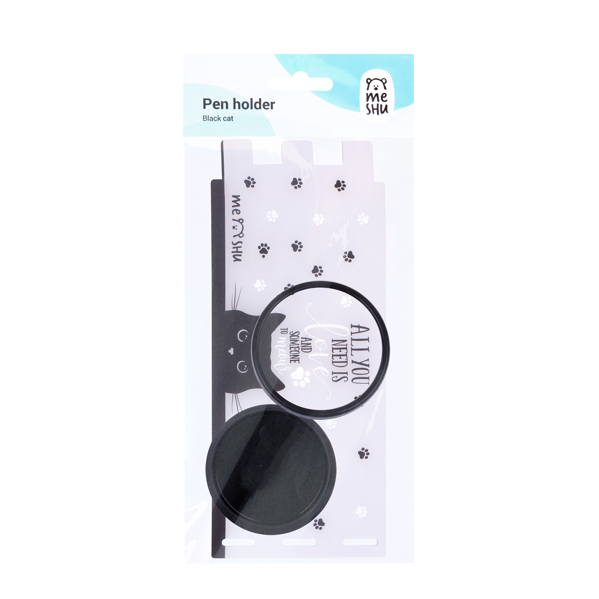 Подставка-стакан MESHU Black Cat в стильном дизайне предназначена для хранения пишущих принадлежностей. Размер круглой подставки – 8,5*12 см. Подставка изготовлена из пластика. Упакована в ОПП пакет с европодвесом. Схема сборки подставки указана на упаковке.