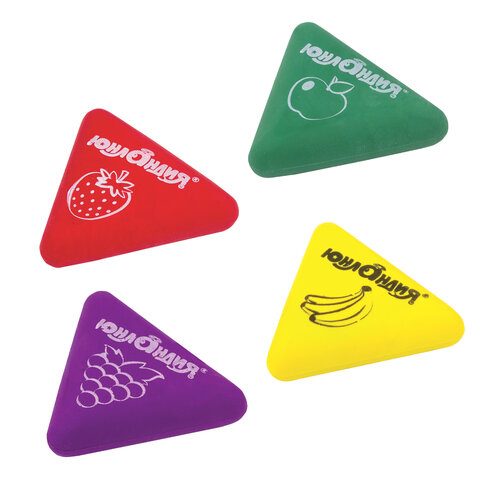 Имеет треугольную форму ярких цветов ассорти с печатью в виде фруктов.