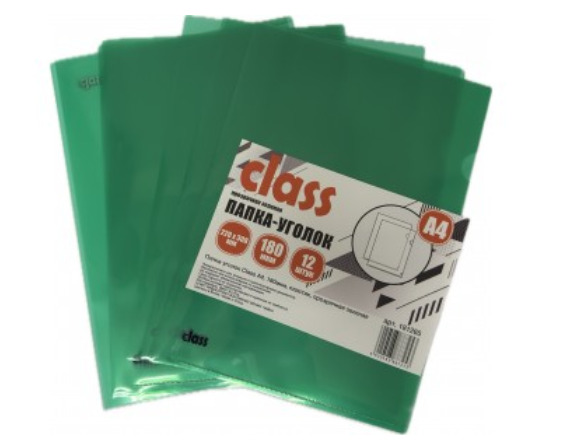 Папка-уголок Class А4, 180мкм, пластик, прозрачная зеленая