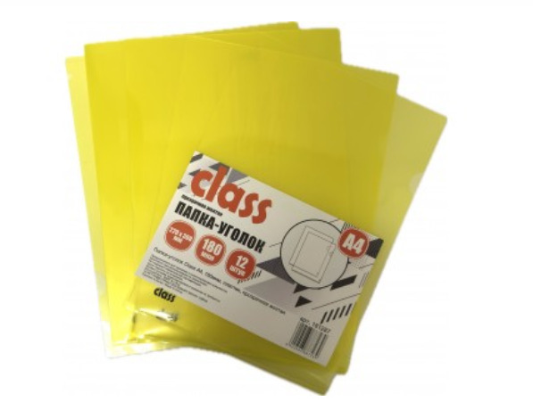 Папка-уголок Class А4, 180мкм, пластик, прозрачная желтая